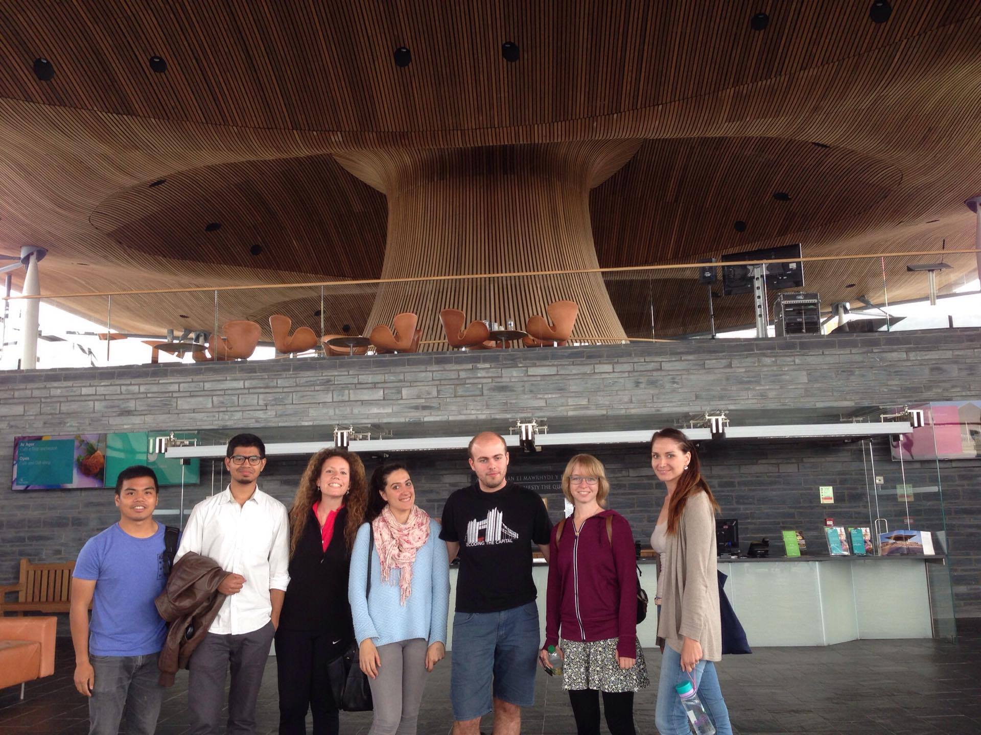 S mírným zpožděním (náš milý Ind Abhijat měl tak nějak pořád času dost) jsme vyrazili do vyhlášené Cardiffské zátoky. Mimo jiné tu stojí Senedd, v němž zasedá velšské Národní shromáždění. Celkem nuda, řeknete si, ale opak je pravdou. Senedd je vysoce moderní budova, která prý vyrobí víc energie než sama spotřebuje. Například na splachování a mytí oken, a že jich je požehnaně, když je budova celá prosklená, používají dešťovou vodu. Díky architektonickému provedení nemusí být budova prakticky téměř vůbec uměle klimatizována. V zimě se tu topí tepelným čerpadlem.