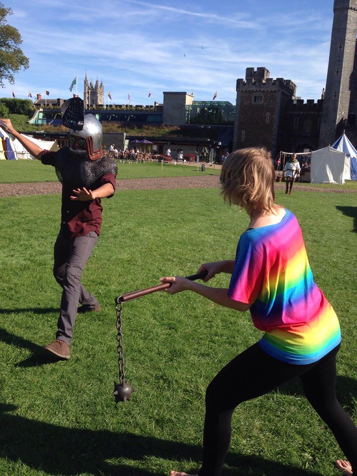 Poznámka k mému outfitu: Toto krásně barevné tričko jsem měla na sobě čistě náhodou. Neměla jsem nejmenší tušení, že tento den se v Cardiffu koná festival pořádaný Pride Cymru – organizací bojující proti diskriminaci neheterosexuálně orientovaných jedinců. Alespoň jsem neměla problém splynout s davem 😀