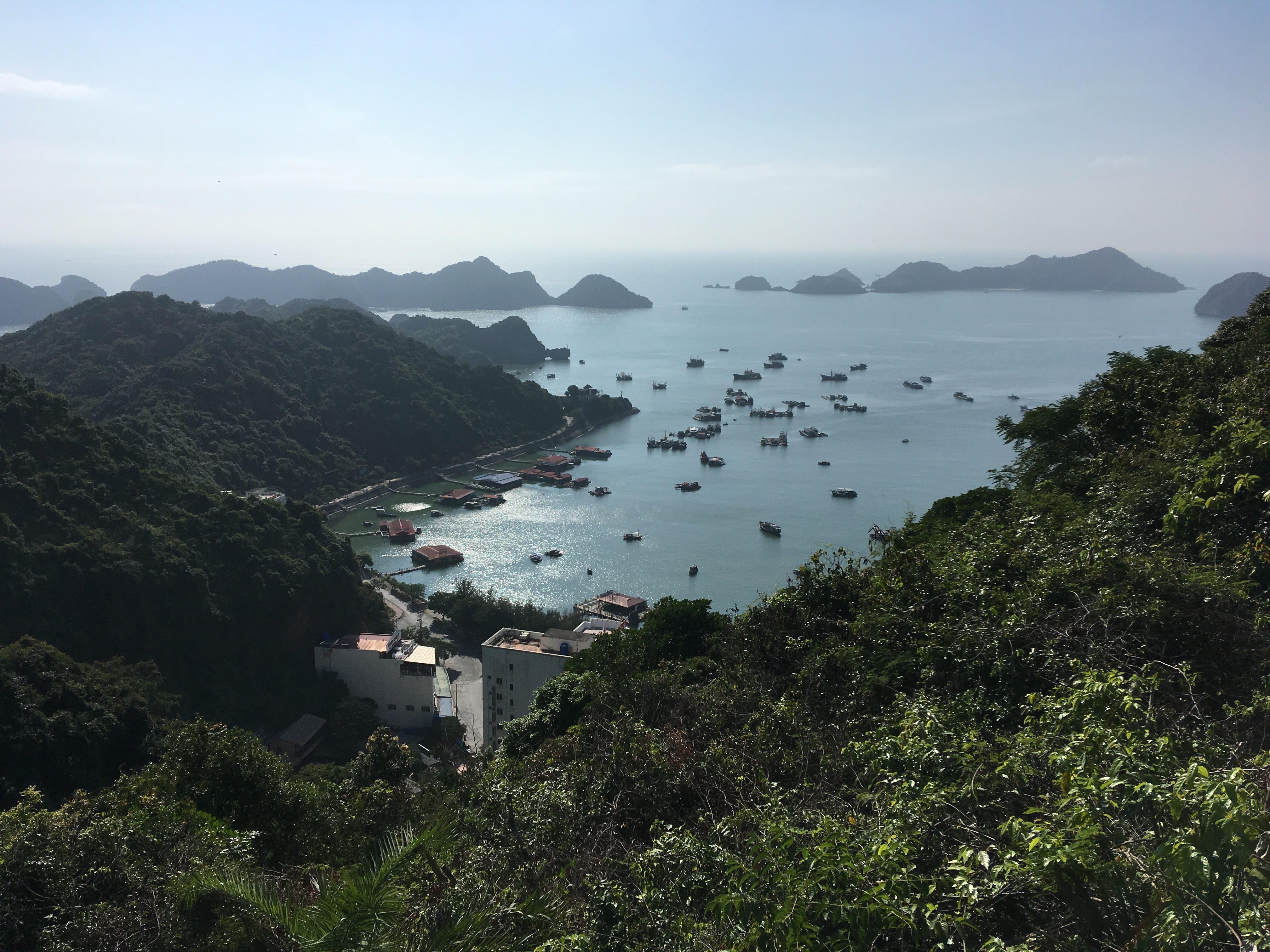 Ostrov má na délku jen asi 23 km, přičemž jedna silnice vede uprostřed ostrova a druhá na pobřeží. Ostrov jsme tak na motorce vyhlídkovou jízdou objeli asi za 2 hoďky. Na ostrově je jediné město Cat Ba Town a asi 3 přístavy. Ovšem v moři kolem ostrova jsou již zmiňované rybářské vesnice.