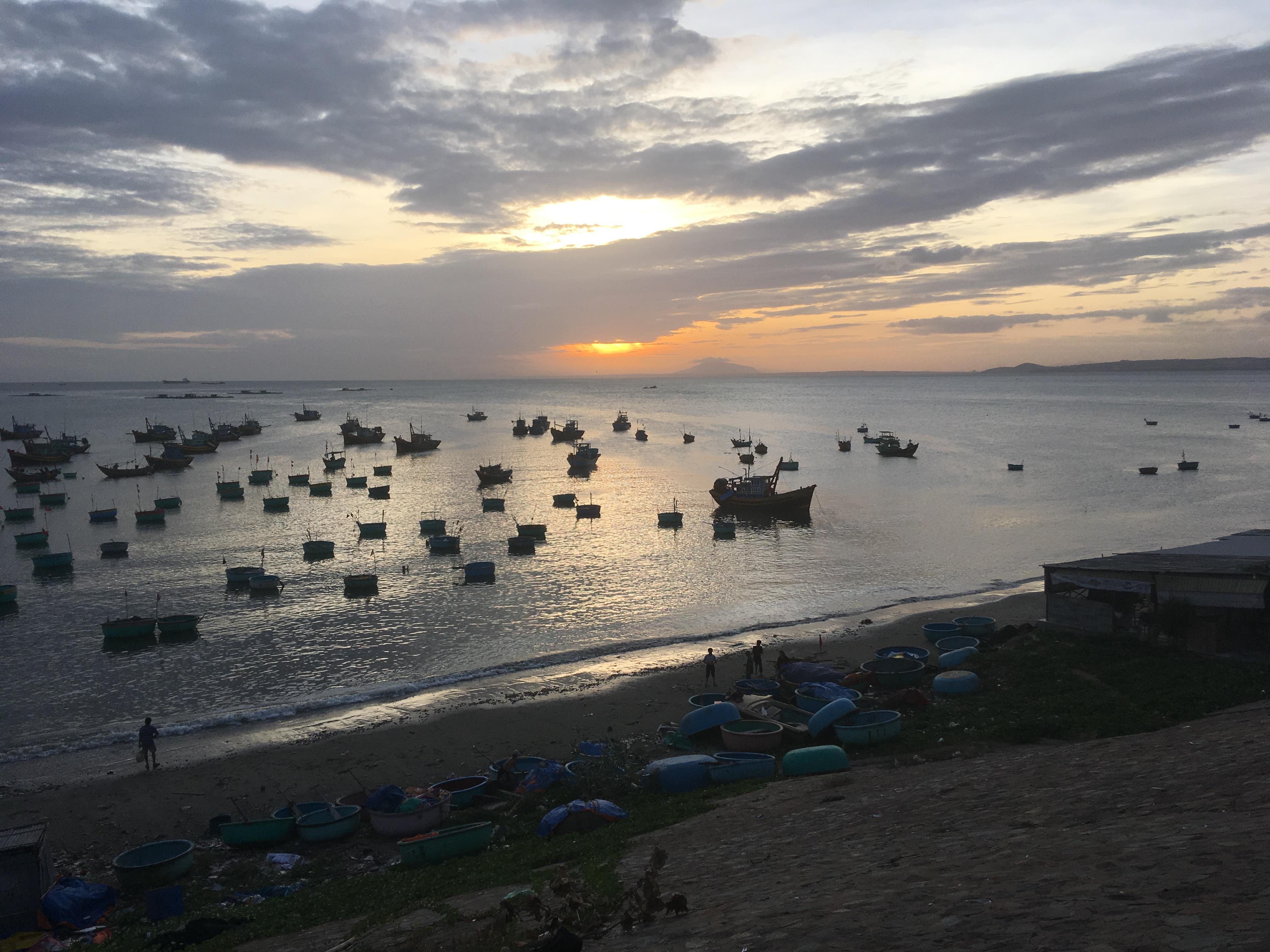 Mui Ne se díky svému velmi příznivému počasí v tuto roční dobu stalo cílem pro náš 3. týden ve Vietnamu. Vodám Tichého oceánu tu přes den vládnou kitesurfaři, neboť tu vane docela silný vítr. Nejlepší denní dobou na koupání v oceánu je rozbřesk, kdy vítr ještě nefouká a k pobřeží míří pravidelné nevysoké vlny.