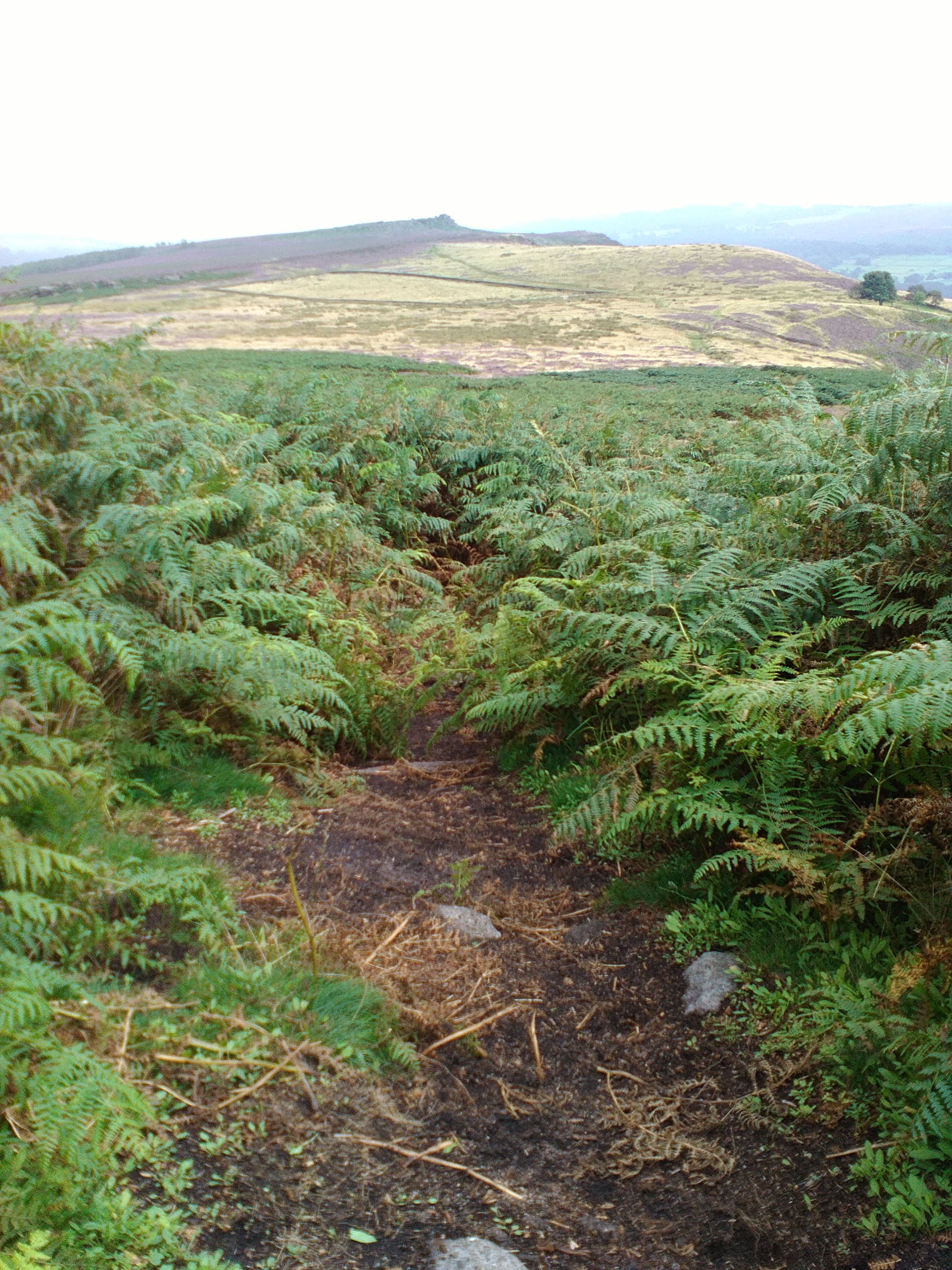 Při sestupu z Higgar Torr jsem se zanořila do lesa kapradin a přes vřesoviště mířila do vesnice Hathersage. Sluníčko zašlo a spustilo se typické anglické mrholení.