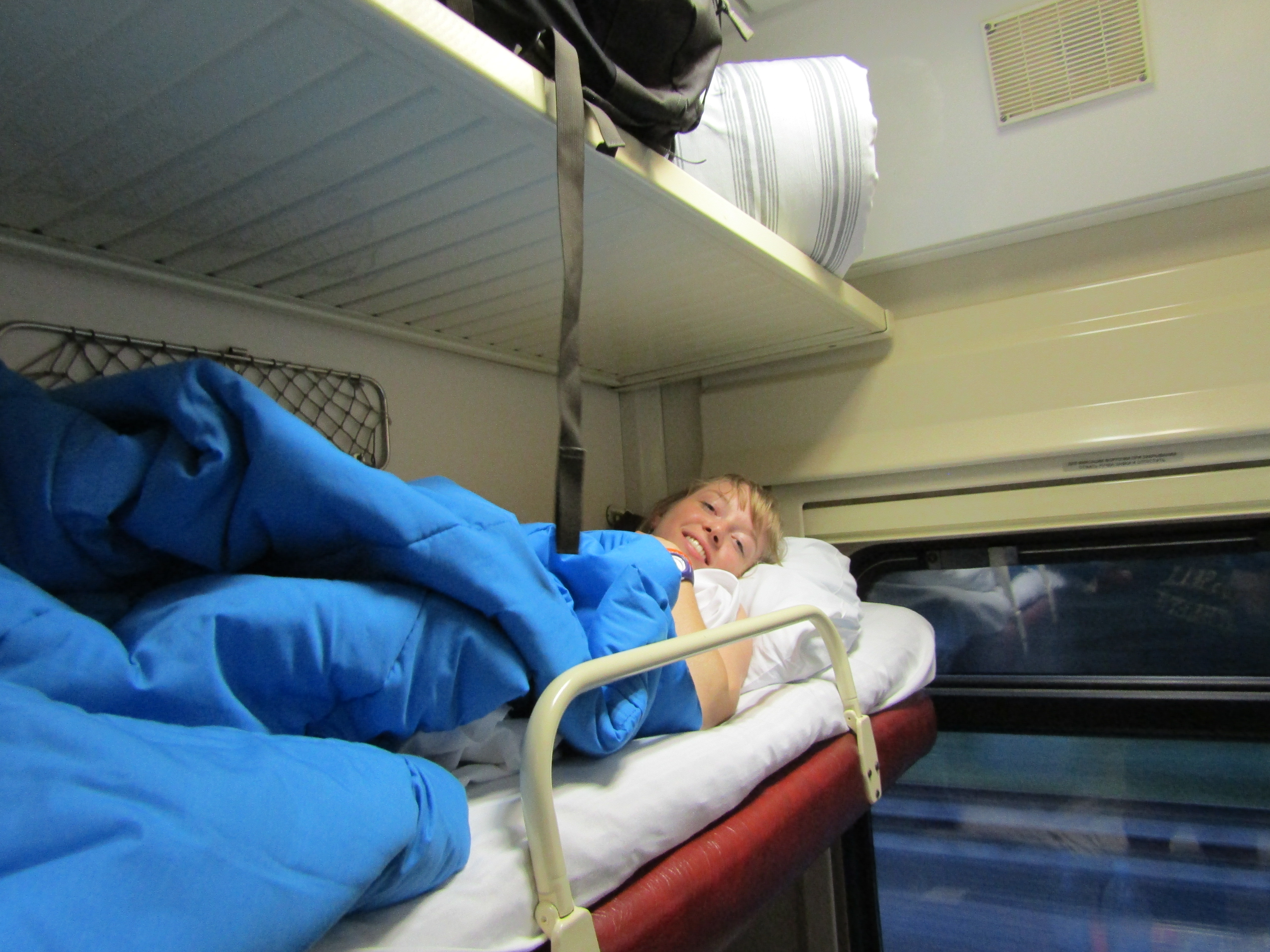 Že jste taky nikdy nejeli spacím vlakem? My až do této chvíle ne. Naše počínaní bylo tedy velmi laické, pohyby nekoordinované, což vedlo ke značnému pobavení ruských spolucestujících. Díky jejich ochotě a laskavosti se nám všem podařilo rozeznat utěrku od povlaku na polštář, natáhnout prostěradlo, druhým prostěradlem se přikrýt a peřinu hodit přesto.