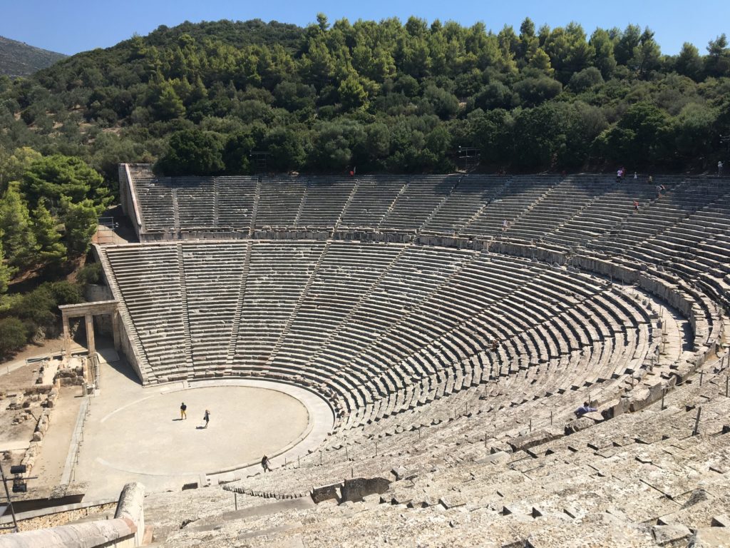 Nocujeme v líném městečku na pobřeží zvaném Palea Epidauros, neboť následující den hodláme navštívit naleziště s pozůstatky významného antického města Epidauros, které lezi 16 km hloubeji ve vnitrozemí. Nejzachovalejsi stavbou v arealu je anticke divadlo, jehoz dokonalou akustiku testujeme na vlastní usi.