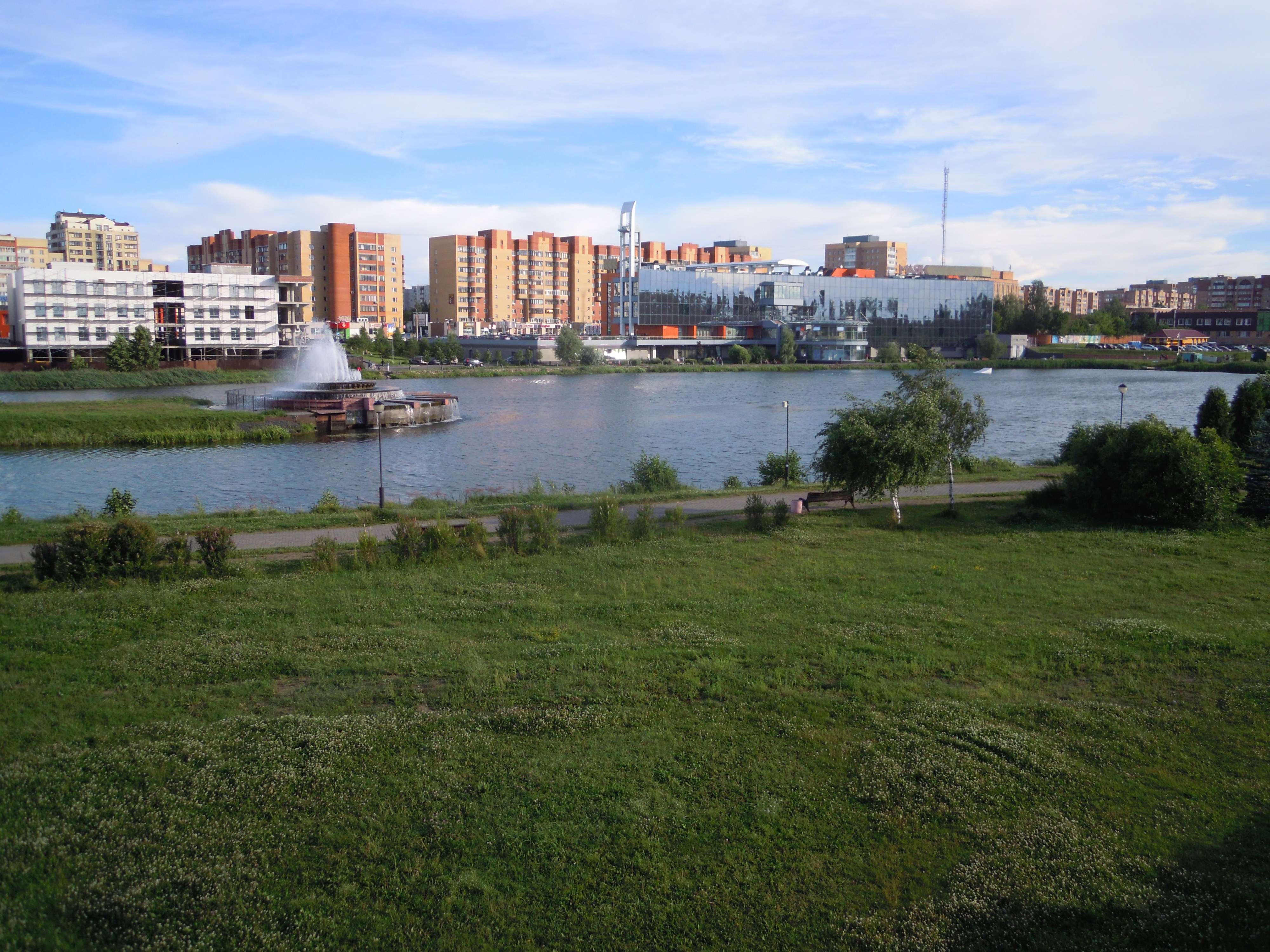 Moderní centrum Dubny. Na rybníčku se prý pořádají všeliké soutěže v různých vodních sportech.