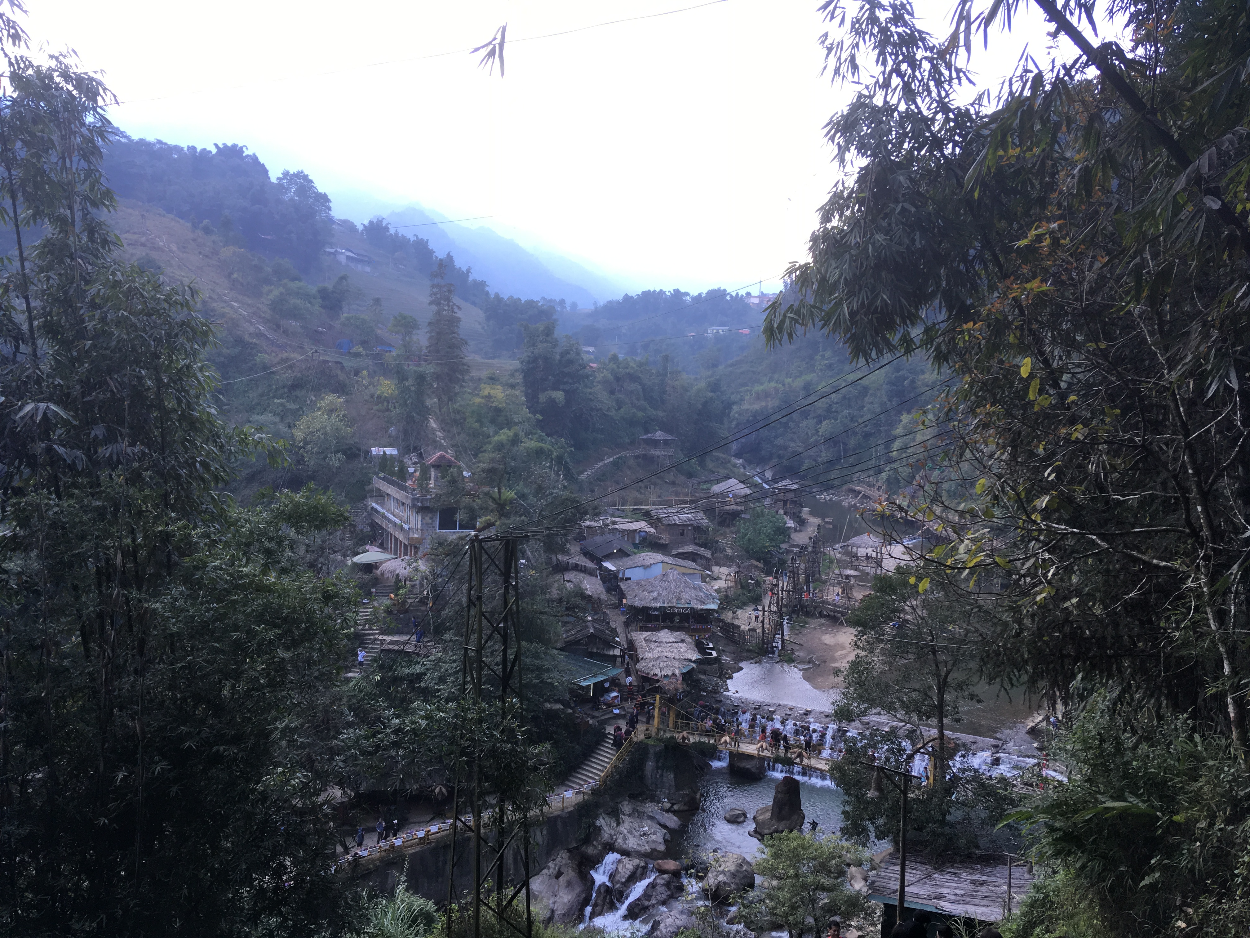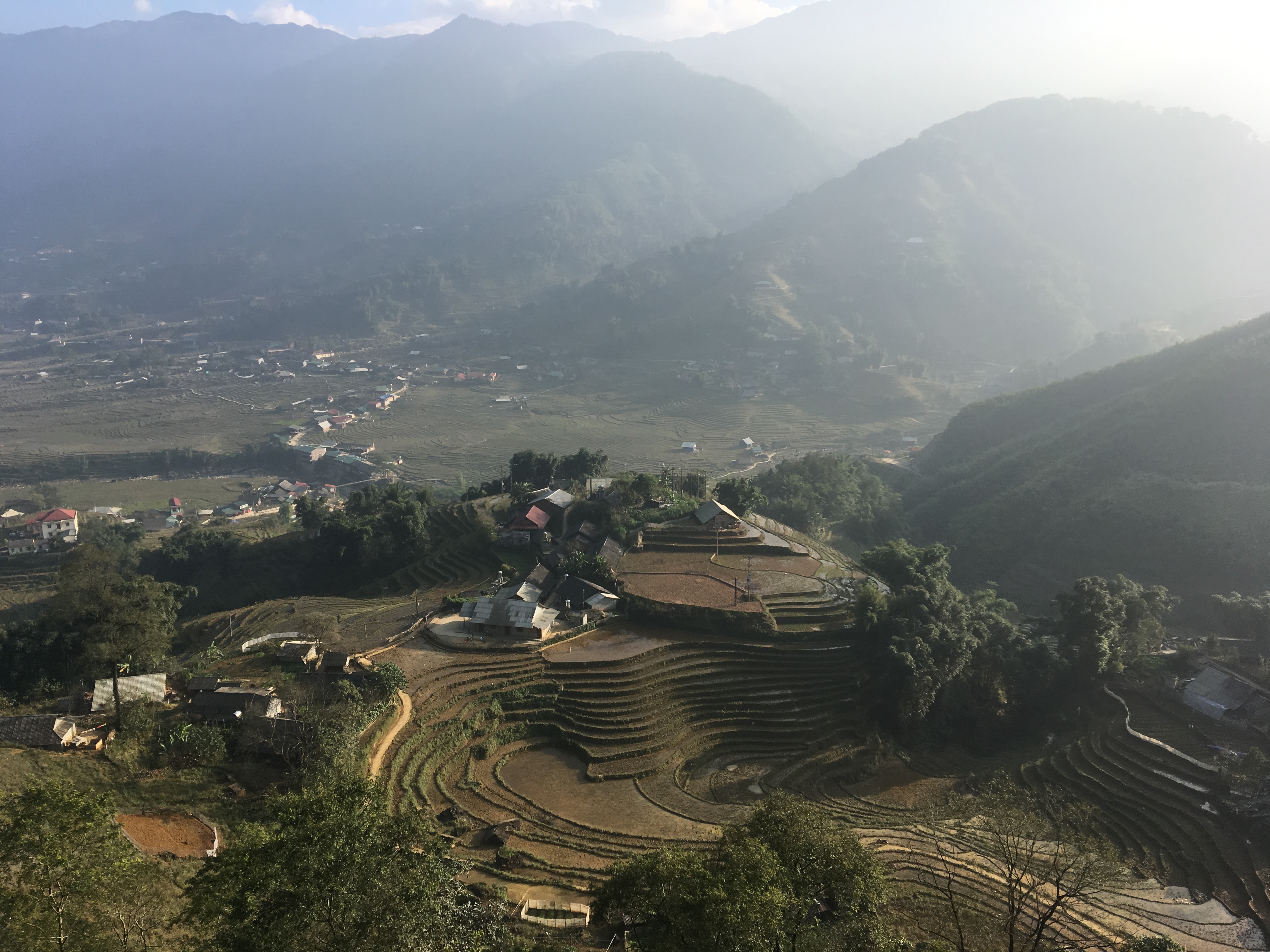 Odpoledne jedeme do údolí Muong Hoa, po jehož úbočích je roztroušeno několik vesnic obývaných etnickými menšinami Černých Hmongů a Rudých Dzao. Vjezd do údolí je hned za Sapou zpoplatněn. Silnice ale není nic moc. Ono se tomu asi ani nedá říkat silnice…Každopádně výhledy krásné, jen trochu zastřené nehustou mlhou. Slunce zachází za hřeben Fan Si Panu už kolem tři čtvrtě na pět. Na údolí se pak pozvolna snáší soumrak a chlad. Přes den je tu teplota kolem 20 °C, v noci jen kolem 8°C. Na pokoji si tedy musíme přitápět klimatizací.