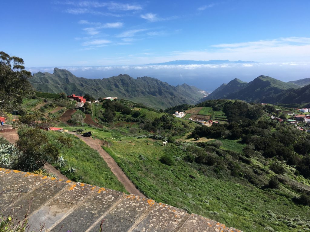 Jezerní kotlinou Jardina stoupáme vzhůru do Parque Rural de Anaga. Silnička se klikatí hustým lesním porostem. Z vyhlídky Cruz del Carmen se nám otevírá parádní výhled na nejvyšší horu Španělska Pico del Teide, jež je činnou sopkou vysokou 3718 m.n.m, od jejího upatí na dně oceánu až na vrchol je to pak asi 7000 m. Vzhledem k její blízkosti od lidských sídel je sopka Teide zapsána na seznamu 16 nejnebezpečnějších sopek světa. Vrchol sopky Teide je nyní zasněžený.
