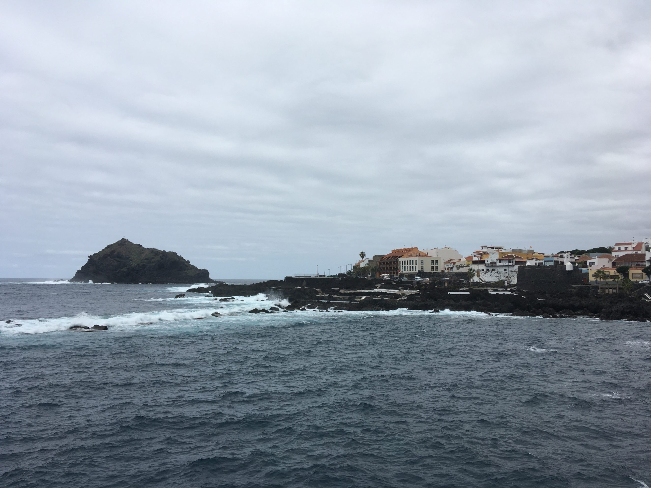 Ještě než se začneme opět šplhat do kopců po silničkách tak strmých, že občas máme pocit, že se snad převrátíme, zastavujeme v městečku Garachico. Zamračené počasí a divokost oceánského příboje propůjčuje tomuto městu, jež bylo na začátku 18. století z velké části zalito lávou, poněkud smutnou atmosféru. Na kamenech těsně nad mořskou hladinou tu lezou červení krabi větší než dlaň.