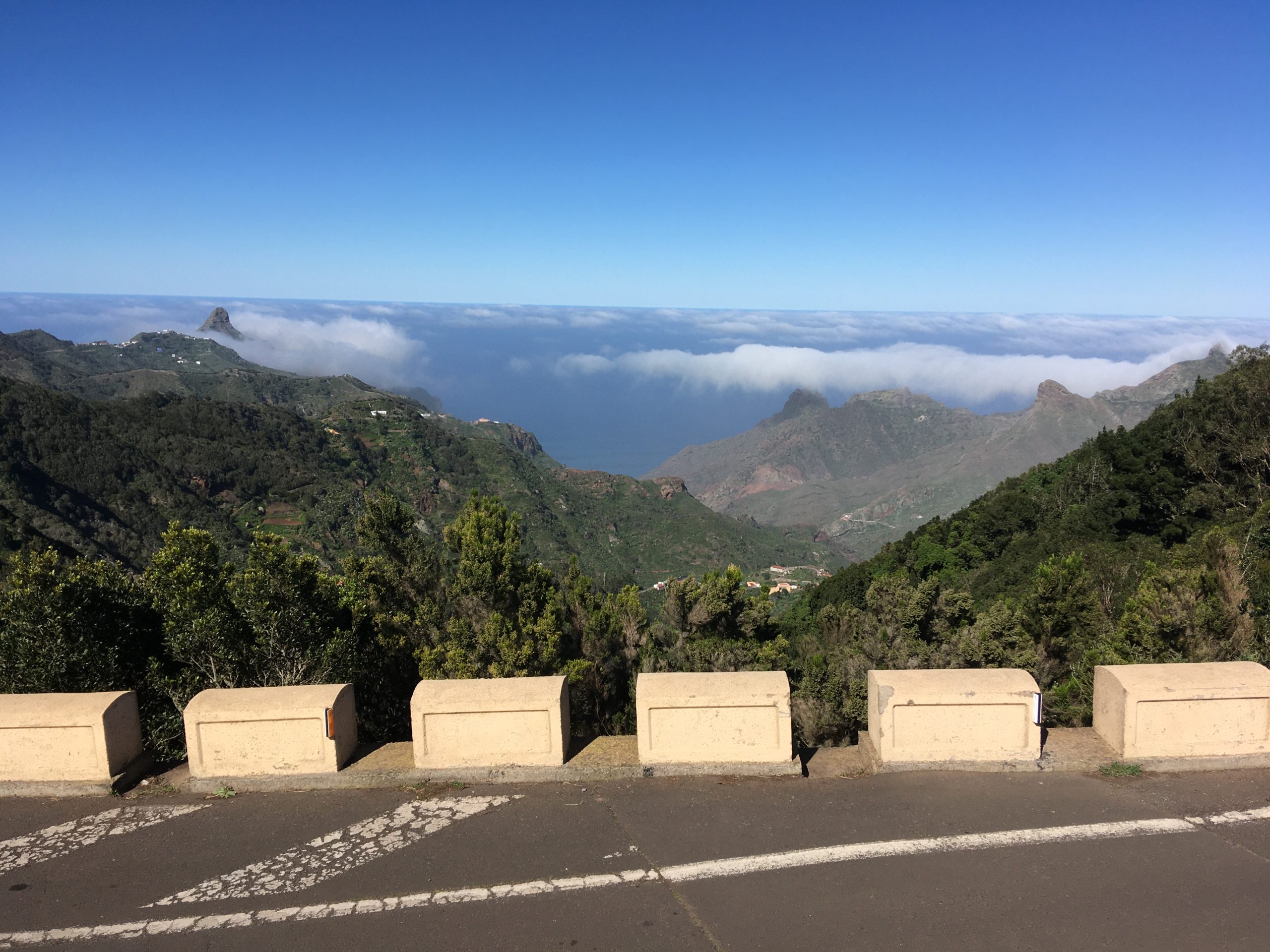 Jezerní kotlinou Jardina stoupáme vzhůru do Parque Rural de Anaga. Silnička se klikatí hustým lesním porostem. Z vyhlídky Cruz del Carmen se nám otevírá parádní výhled na nejvyšší horu Španělska Pico del Teide, jež je činnou sopkou vysokou 3718 m.n.m, od jejího upatí na dně oceánu až na vrchol je to pak asi 7000 m. Vzhledem k její blízkosti od lidských sídel je sopka Teide zapsána na seznamu 16 nejnebezpečnějších sopek světa. Vrchol sopky Teide je nyní zasněžený.